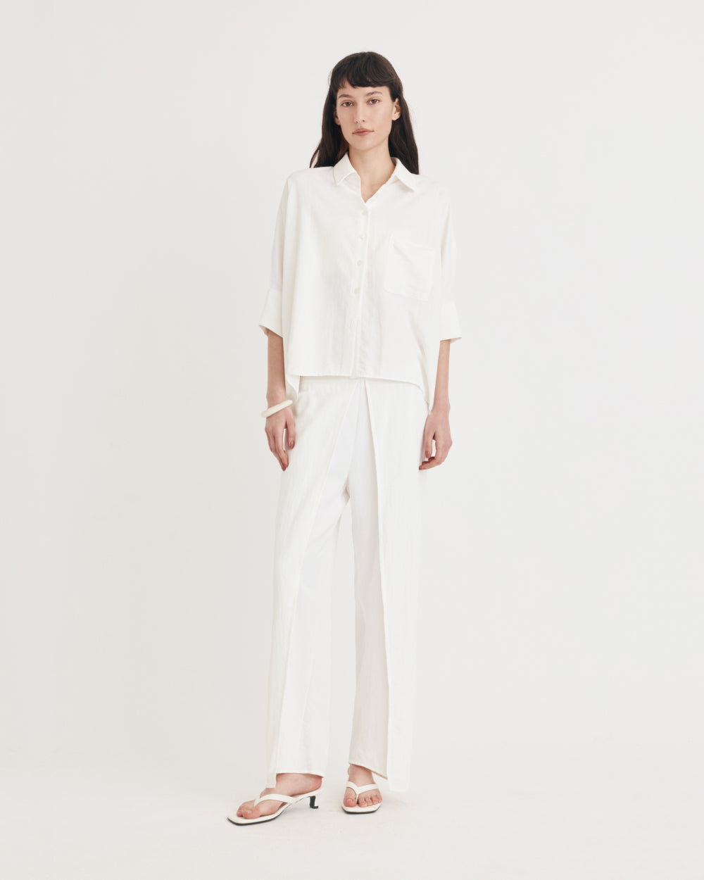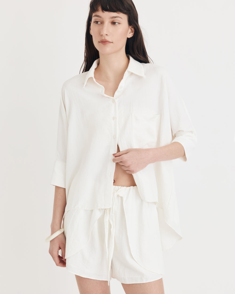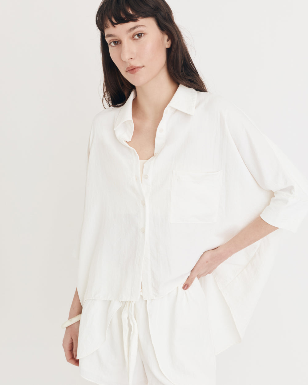 • 3/4 Sleeve High Low Blouse in softly draping twill
