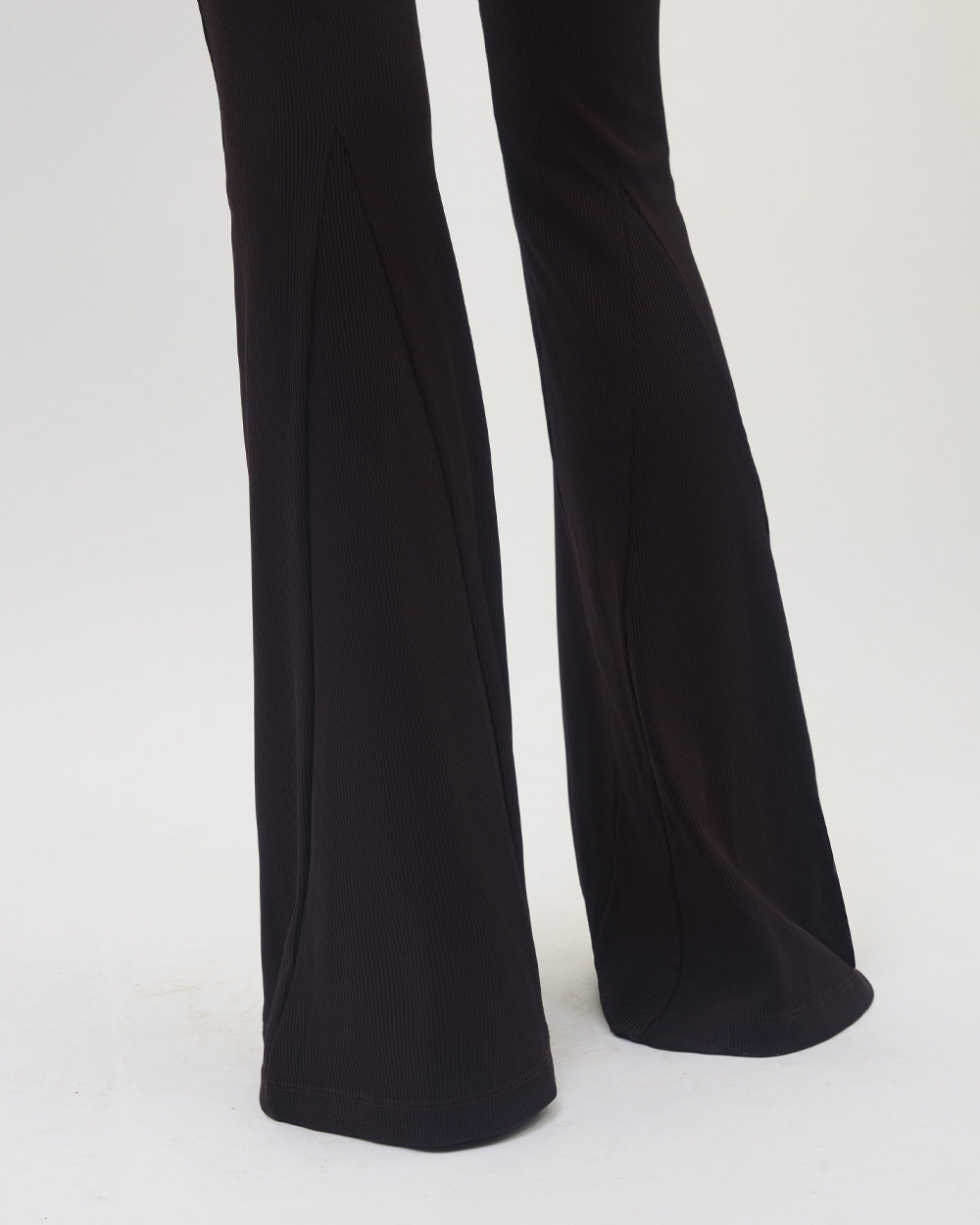 Discover ultimate comfort and style in Nylora's LYLE PANTS. Made from our signature 4-way stretch ribbed fabric, these pants feature a feminine flared design that creates a flattering silhouette. The wide elastic waistband and medium weight 2x2 ribbed fabric add to the comfort and versatility of these pants. Available in burgundy
