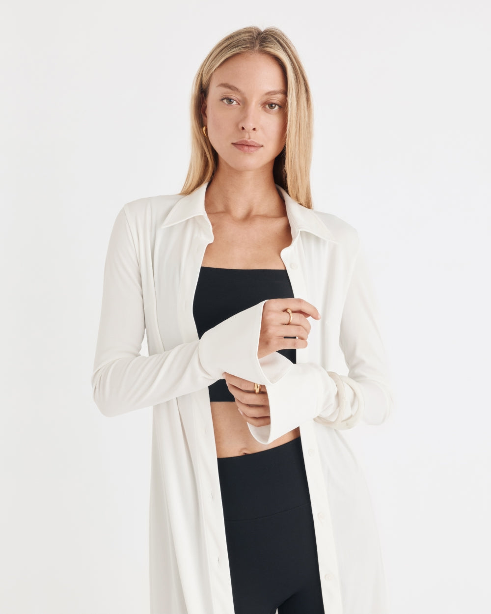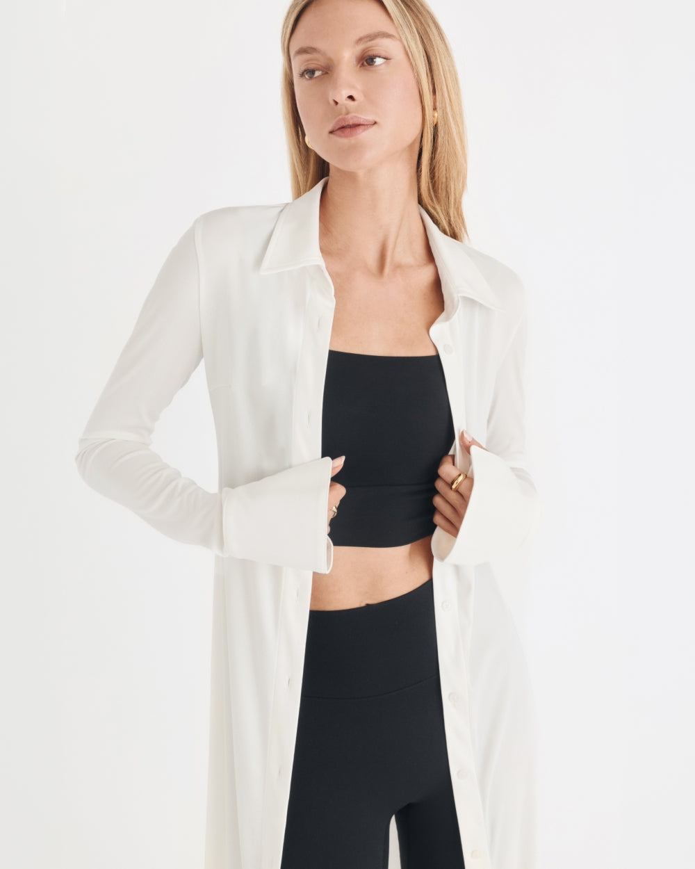 Flared cuffs with button detailing, that add a sophisticated, modern touch