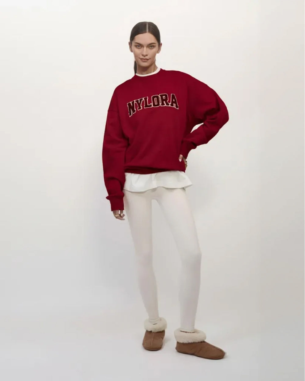 - Chenille "Nylora" logo graphic at front