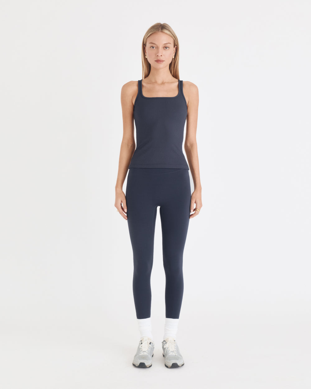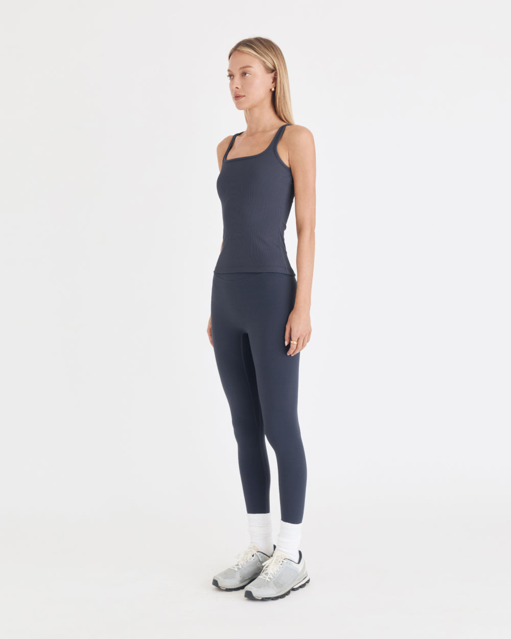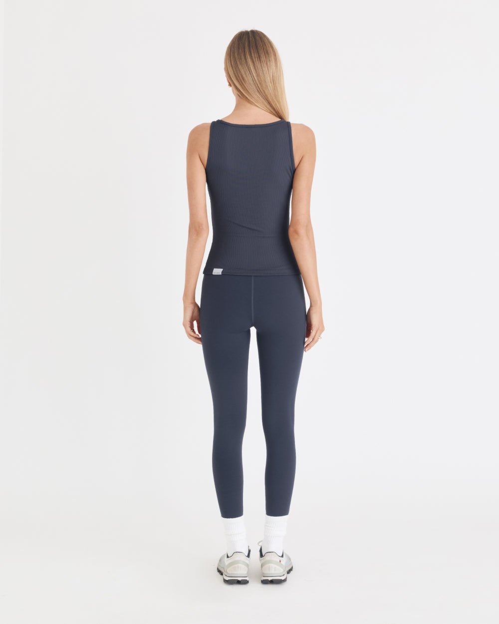 Elevate your wardrobe with the BLAKE TOP in MIDNIGHT. Made from Nylora's signature 4-way stretch rib fabric, this square neck tank top combines both comfort and style. The sleeveless design and logo tab label on the back hem add a touch of sophistication to this midnight-colored top
