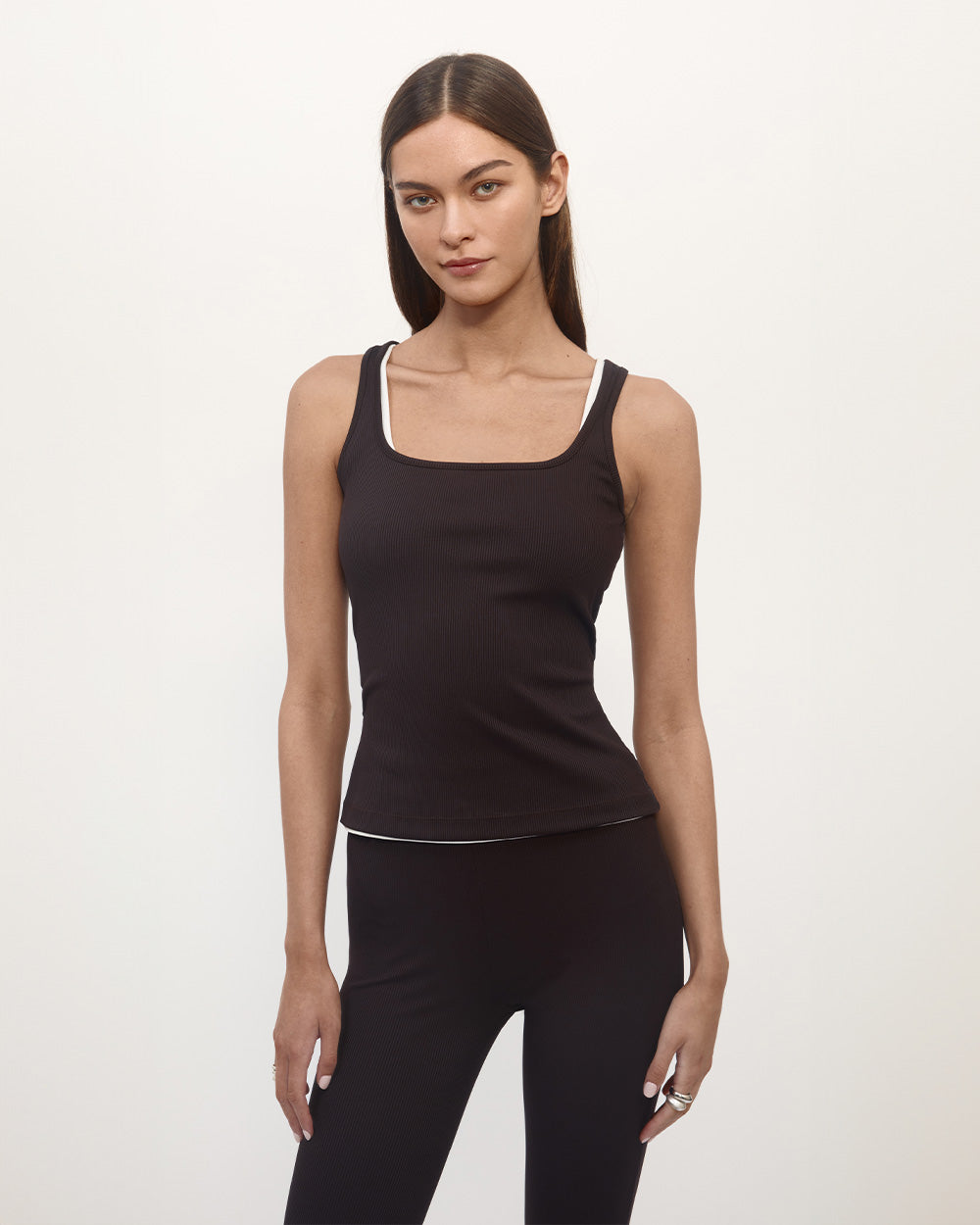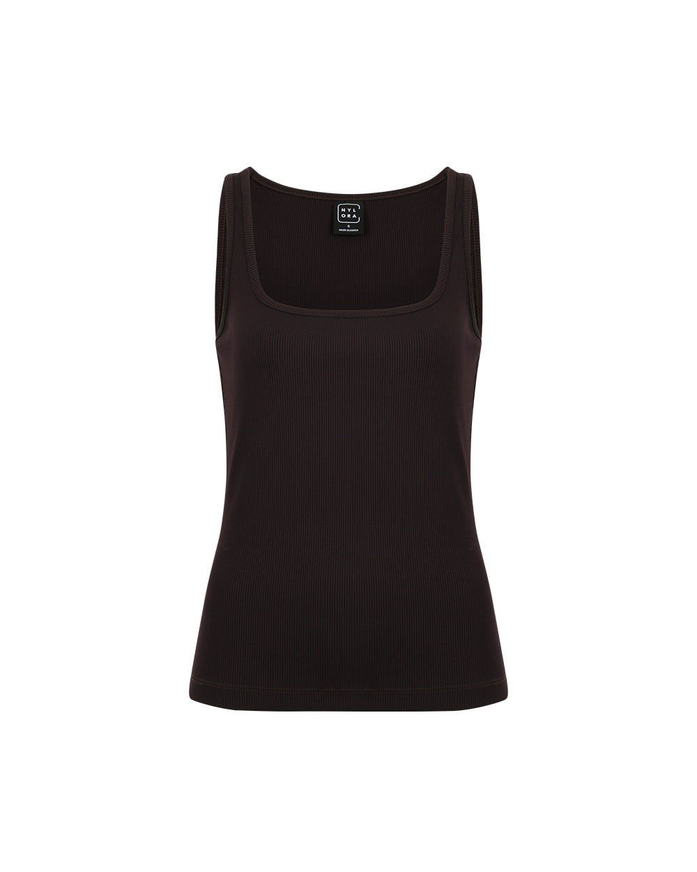 Elevate your wardrobe with the BLAKE TOP in BURGUNDY. Made from Nylora's signature 4-way stretch rib fabric, this square neck tank top combines both comfort and style. The sleeveless design and logo tab label on the back hem add a touch of sophistication to this midnight-colored top