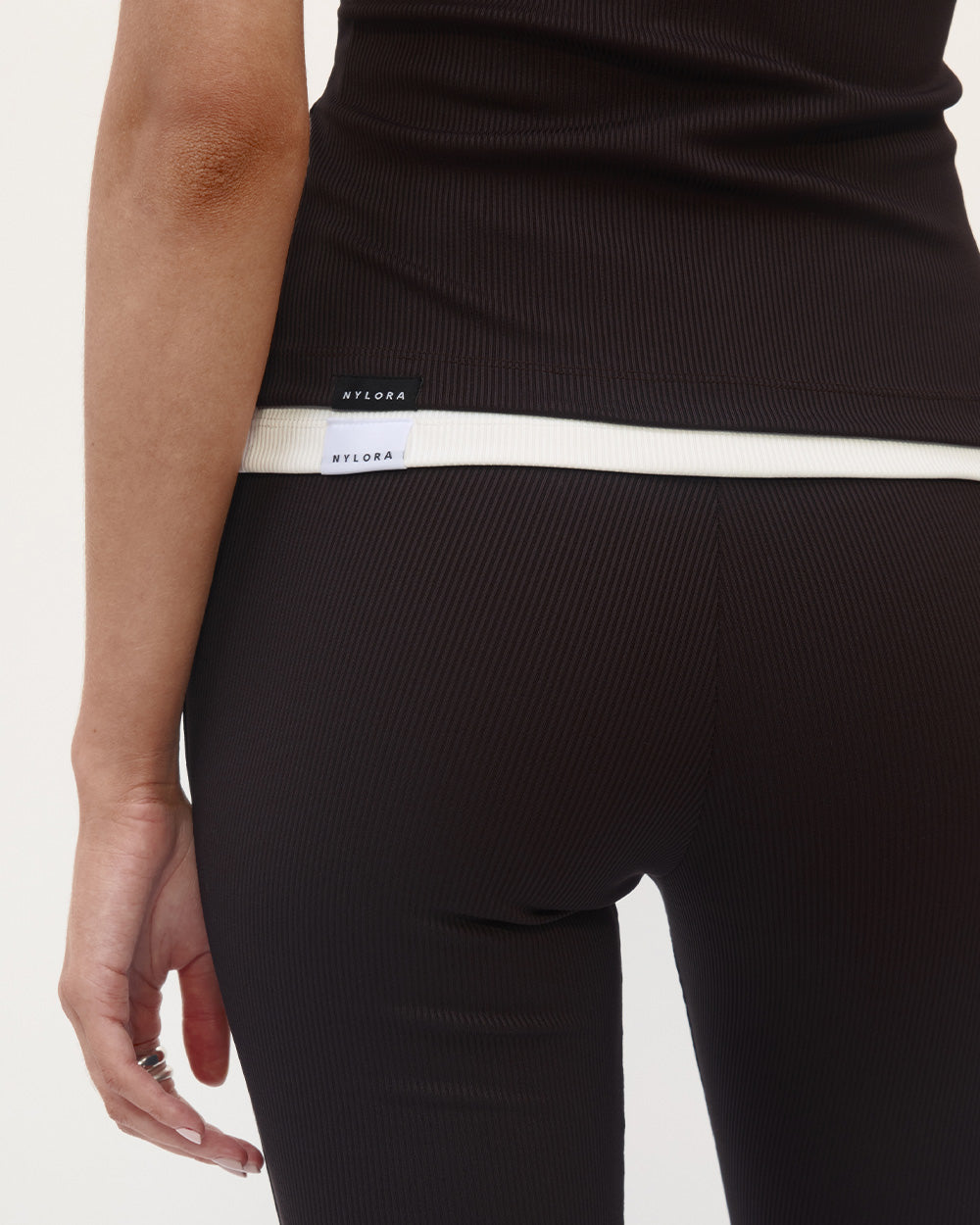 - Nylora's signature 4-way stretch rib fabric